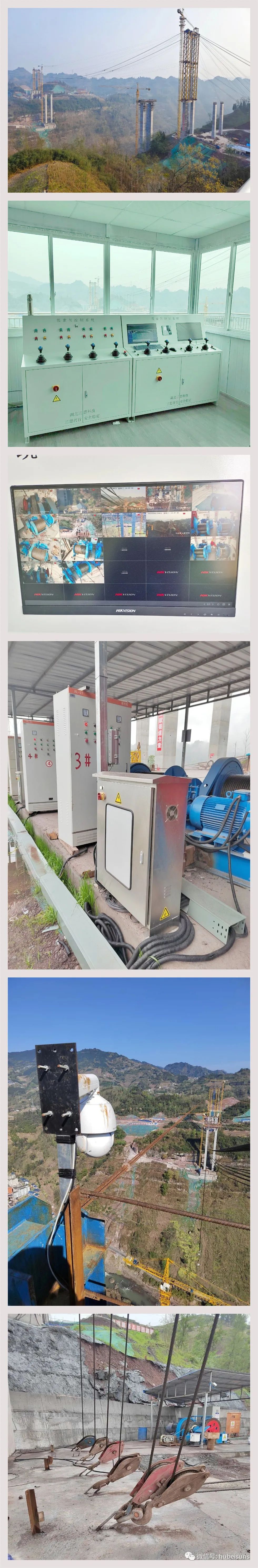 3月末,在樂西高速蘇壩特大橋施工現(xiàn)場,纜索吊裝系統(tǒng)試吊圓滿完成。此次試吊主要目的是檢查主索初始安裝垂度、塔頂?shù)目v向水平位移、主索在最大吊重的受力狀況、最大吊重下跑車的運行范圍、整個纜索系統(tǒng)運行情況等參數(shù),是否滿足纜索吊機設計書及現(xiàn)場施工的要求。此項目現(xiàn)場的纜索吊配裝的正是我們湖北三思科技的纜索吊集中控制系統(tǒng)!