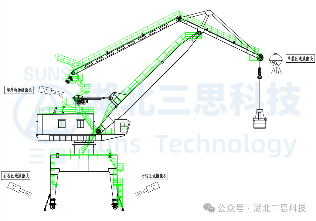 ▲門座式起重機安全監(jiān)控系統(tǒng)攝像頭安裝示意圖