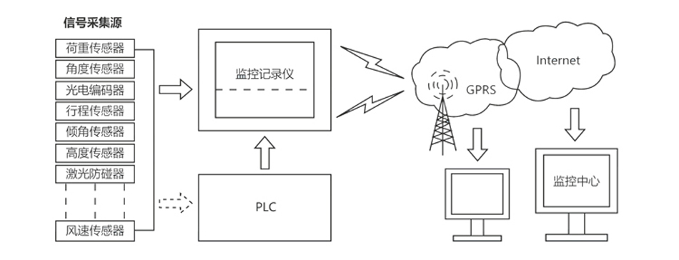 系統(tǒng)可選配GPRS遠(yuǎn)程監(jiān)控系統(tǒng),將信息傳輸至遠(yuǎn)程平臺(tái),能夠?qū)崿F(xiàn)設(shè)備操作者、遠(yuǎn)程管理者等層次的管理需求,有效提升了起重機(jī)的安全性能和信息化管理效率。能夠?qū)崿F(xiàn)操作者、遠(yuǎn)程管理者等層次的管理需求,有效提升了起重機(jī)的安全性能和信息化管理效率。
