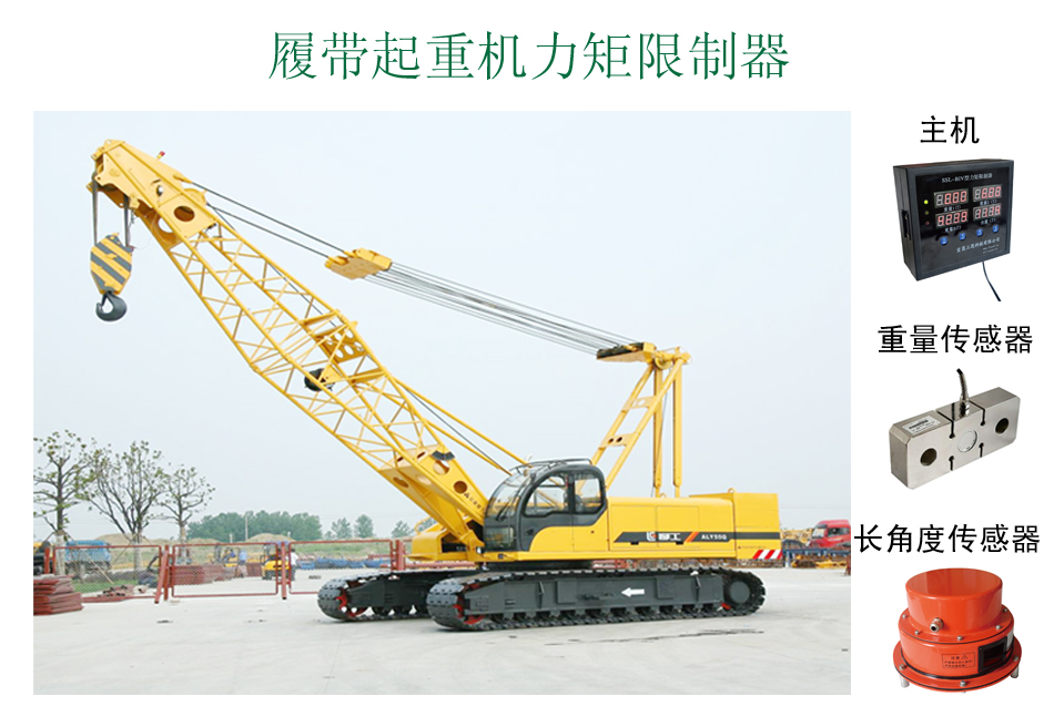 履帶吊力矩限制器主要采用主繩取力或變幅取力。主繩取力傳感器安裝于臂桿頭部,直接測量載荷;變幅取力傳感器安裝于變幅繩上。通過測量變幅拉力計算起吊載荷。變幅繩采樣方式的算法復雜,但使用維護方便,不影響主繩的更換維修。