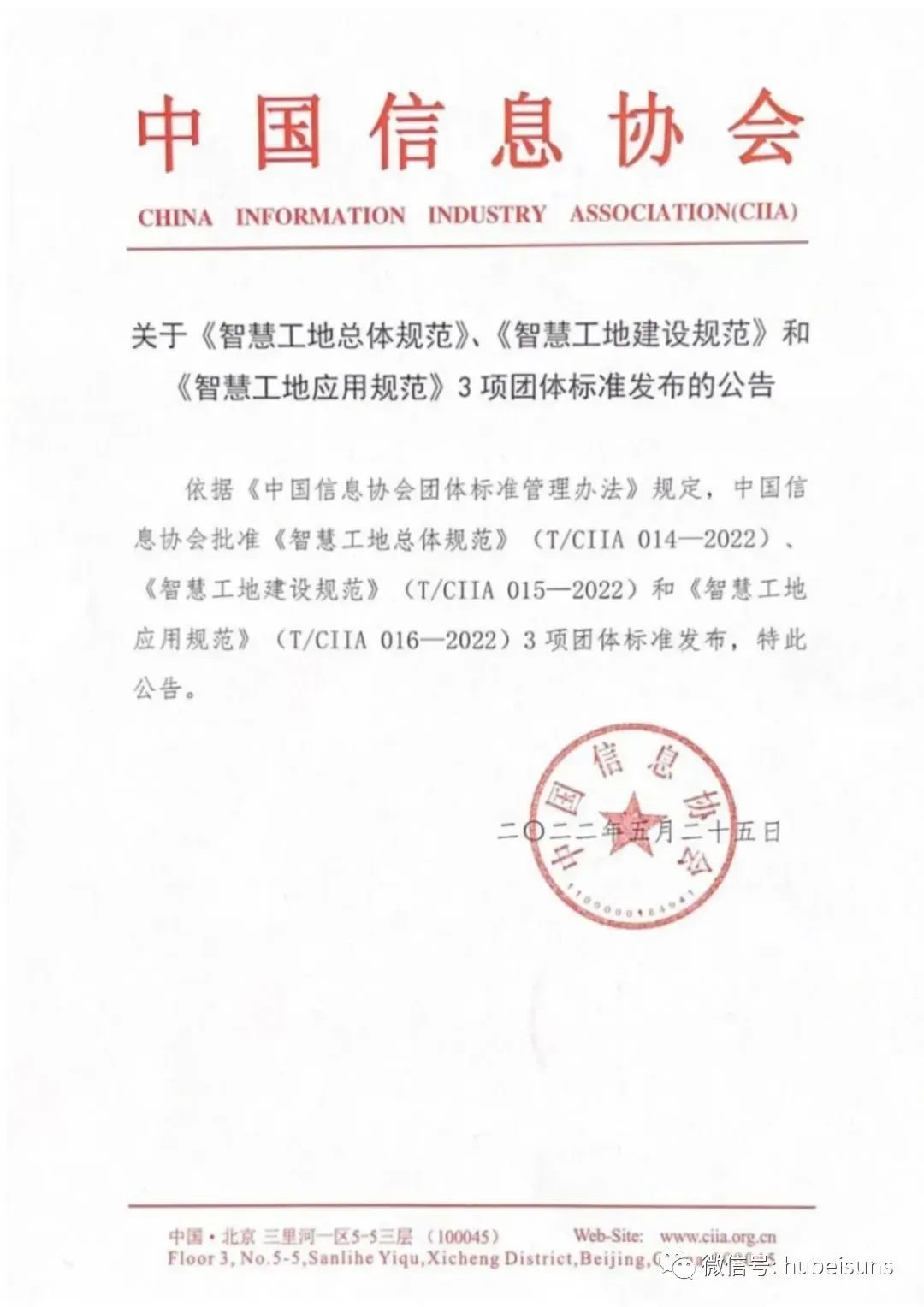 2022年5月25日,由湖北三思科技股份有限公司參與起草的《智慧工地建設(shè)規(guī)范》《智慧工地總體規(guī)范》《智慧工地應(yīng)用規(guī)范》三項(xiàng)團(tuán)體標(biāo)準(zhǔn)經(jīng)中國信息協(xié)會批準(zhǔn)正式發(fā)布!
