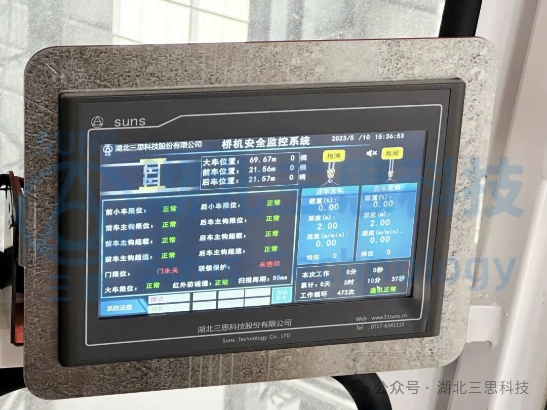 系統(tǒng)實(shí)時(shí)顯示起重機(jī)的運(yùn)行狀況參數(shù),如:主副參數(shù)、整車參數(shù)、天車參數(shù)、本次工作時(shí)間、工作時(shí)間、工作次數(shù)、通訊狀況等,可以讓駕駛員全方位掌握橋機(jī)的實(shí)時(shí)運(yùn)行狀況,提高了操作的安全性。