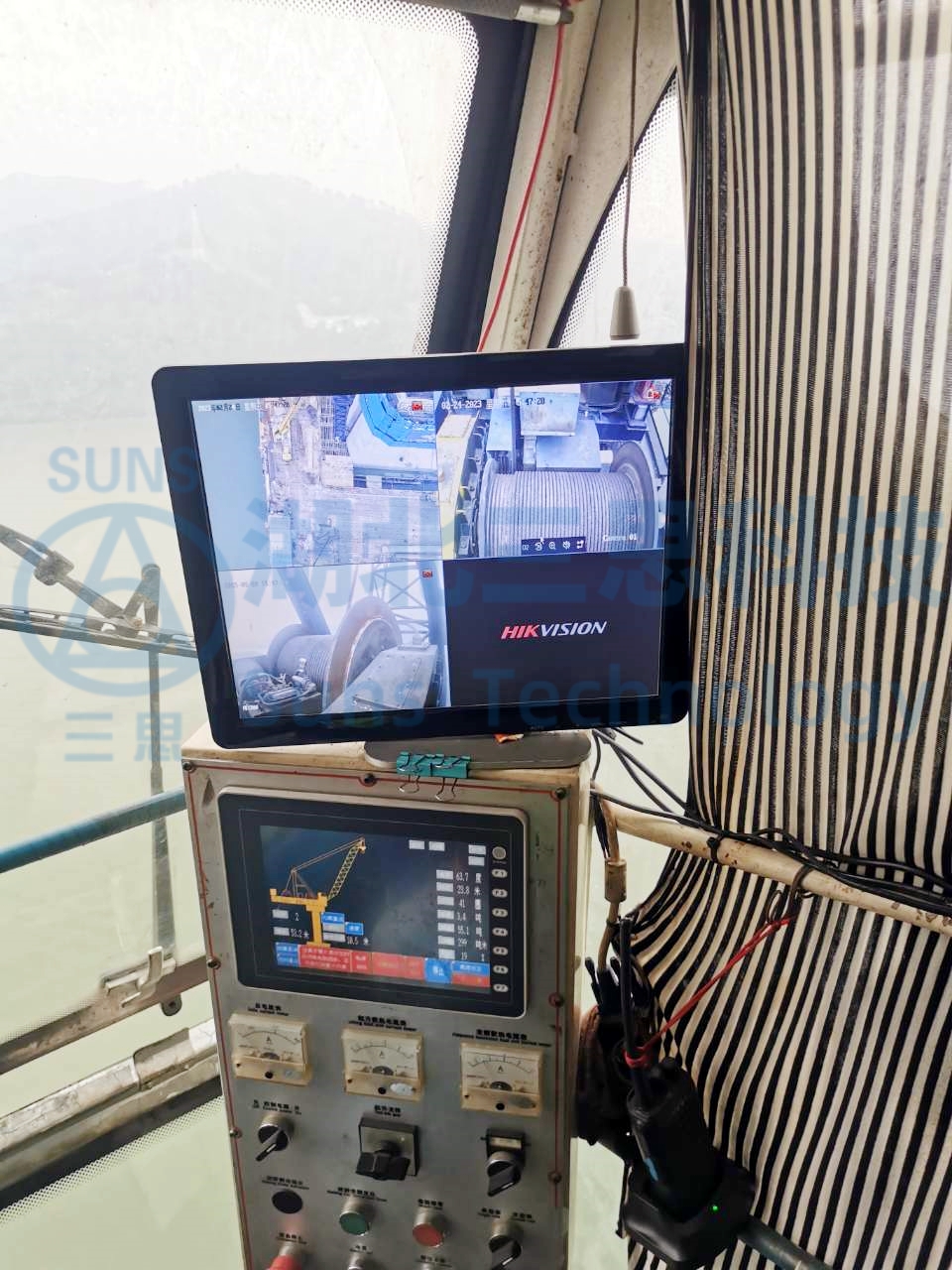 視頻監(jiān)控系統(tǒng)監(jiān)測塔吊的起升卷揚、行程卷揚、吊裝區(qū)域,視頻顯示器放置于駕駛室中,給駕駛員帶來更加寬廣的操作視野,提高了塔吊操作便捷性。