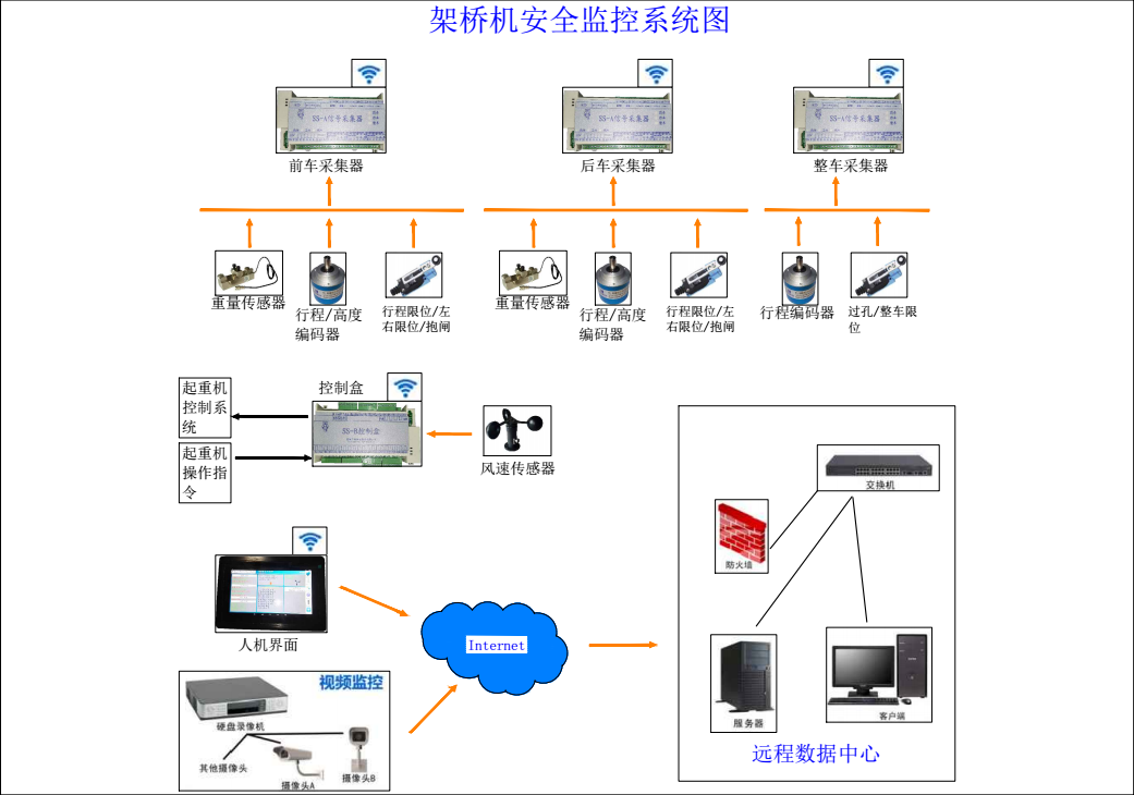 本架橋機(jī)安全監(jiān)控管理系統(tǒng)由視頻監(jiān)控系統(tǒng)和安全監(jiān)控系統(tǒng)組成。