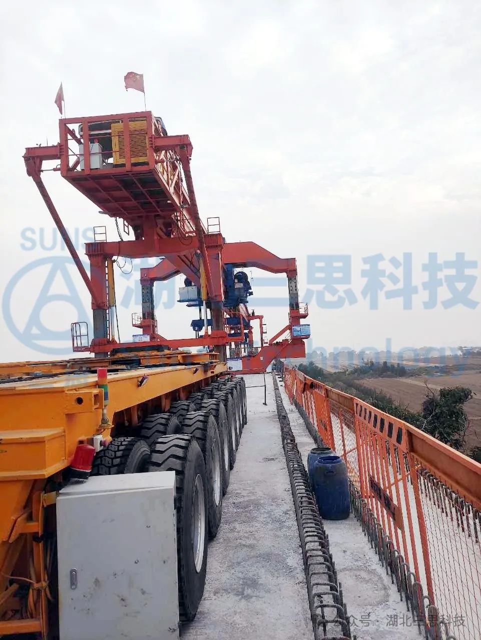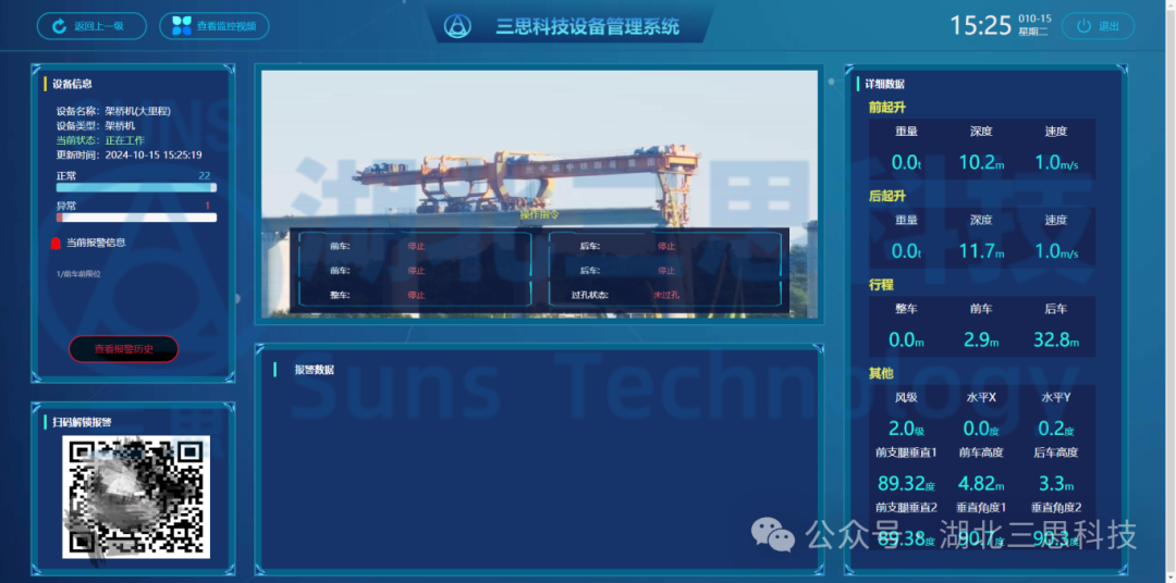本次由湖北三思科技參與的起重機(jī)安全監(jiān)控系統(tǒng)的設(shè)計(jì)、安裝的設(shè)備是一臺1000噸的單導(dǎo)梁架橋機(jī),在常規(guī)架橋機(jī)安全管理系統(tǒng)的功能上,本系統(tǒng)增加了重大安全隱患報(bào)警、掃碼解鎖等功能,屬于行業(yè)類首創(chuàng)!