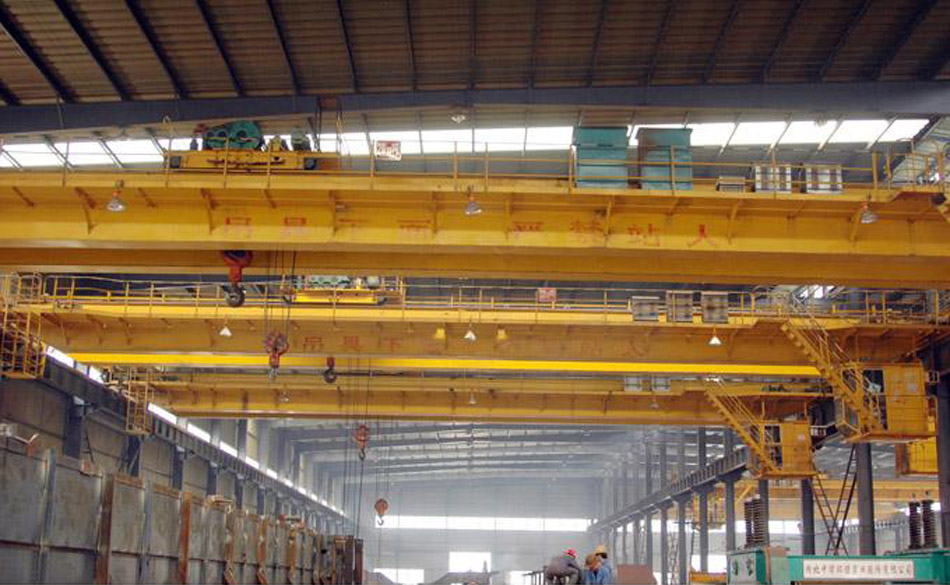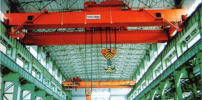 橋式起重機(jī)是橫架于車(chē)間、倉(cāng)庫(kù)和料場(chǎng)上空進(jìn)行物料吊運(yùn)的起重設(shè)備。由于它的兩端坐落在高大的水泥柱或者金屬支架上,形狀似橋。橋式起重機(jī)的橋架沿鋪設(shè)在兩側(cè)高架上的軌道縱向運(yùn)行,可以充分利用橋架下面的空間吊運(yùn)物料,不受地面設(shè)備的阻礙。它是使用范圍最廣、數(shù)量最多的一種起重機(jī)械。