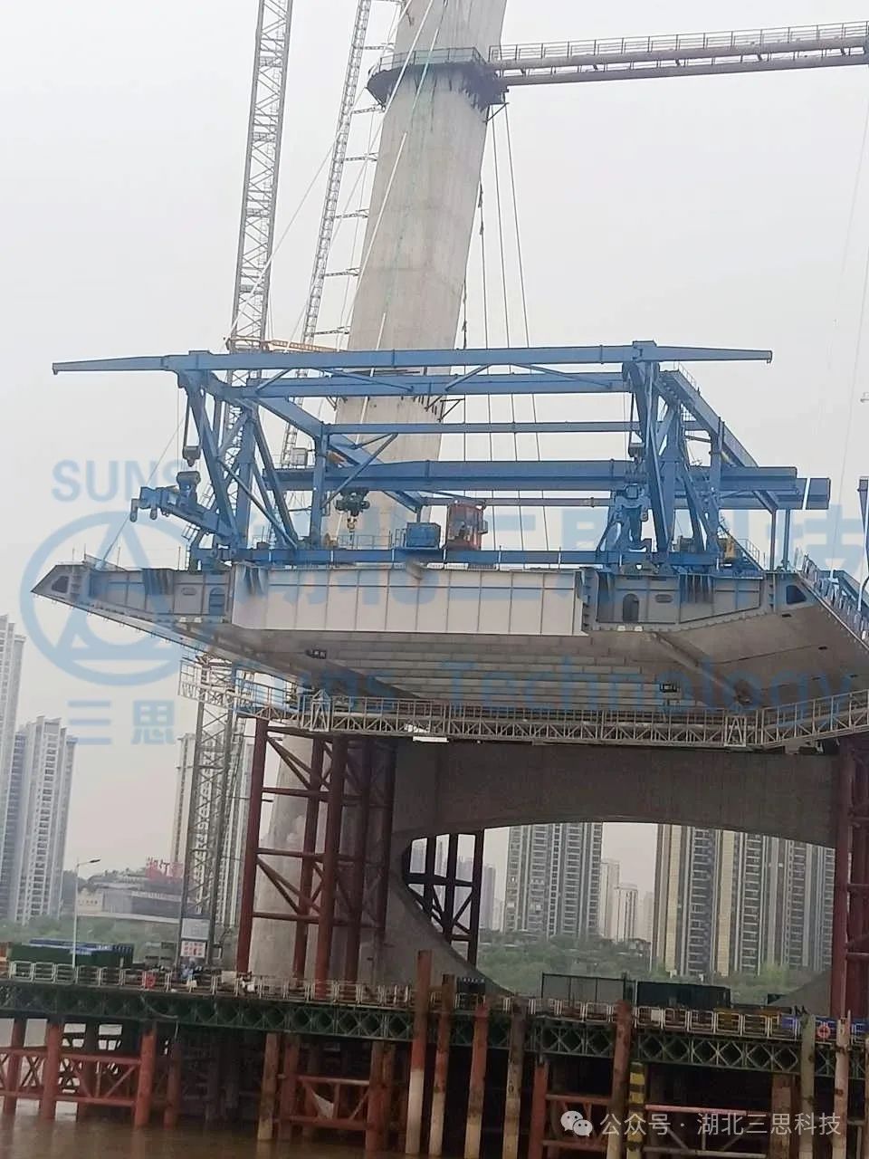 湖北三思科技此次參與的是一臺起重能力達900T的運架一體機,設備位于湖南某橋梁建設現場。