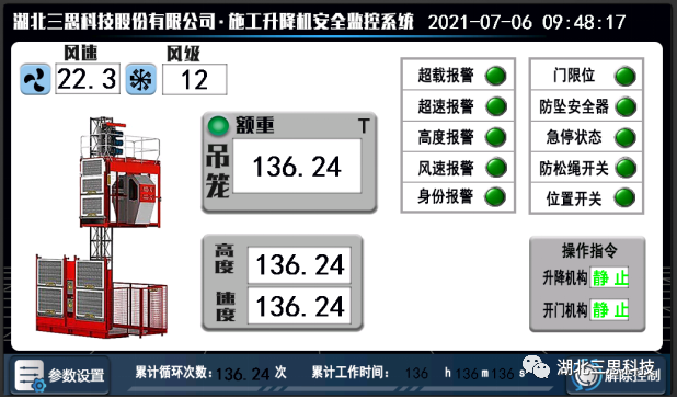 采用工業(yè)高亮度彩色液晶顯示器,10寸超大顯示界面,支持實時記錄重量、高度、風(fēng)速、限位等數(shù)據(jù),并提供預(yù)警、報警信息,實現(xiàn)升降機的全方位保護。